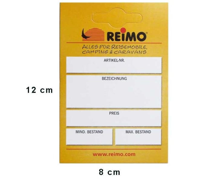 100 ks. Karty zboží usnadňují označování prodejních regálů. Zároveň je můžete využít k tomu, abyste zabránili vyprodání zboží, pokud jsou karty zavěšeny tak, abyste si mohli včas objednat zboží před vyprodáním posledního kusu. Formát Š8 x V12 cm byl zvolen tak, aby bylo možné snadno nalepit štítky na zboží Reimo. Vyplňte, vyjměte předříznutý zářez a zavěste na police – hotovo. Vždy tak budete vědět, co bylo na háčku při posledním prodeji. Dokonce i v obchodě s malými díly máte vždy přehled o kartách s náhradními díly. Karty jsou dokonalým pomocníkem při plánování renovace prodejny.