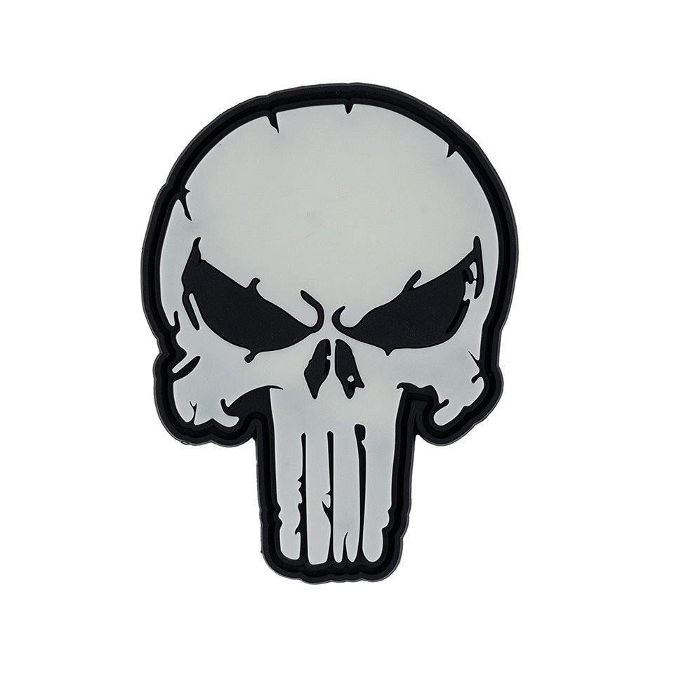 101INC nášivka 3D plastová PUNISH SKULL velcro GLOW IN THE DARK