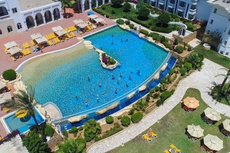 - 🌍 Hotel se pyšní výbornou polohou v turistické zóně Yasmine Hammamet. Okouzlí vás svou architekturou inspirovanou tradiční arabskou medínou, s bílými domky, oblouky a zelenými zahradami, což vytváří neopakovatelnou atmosféru.