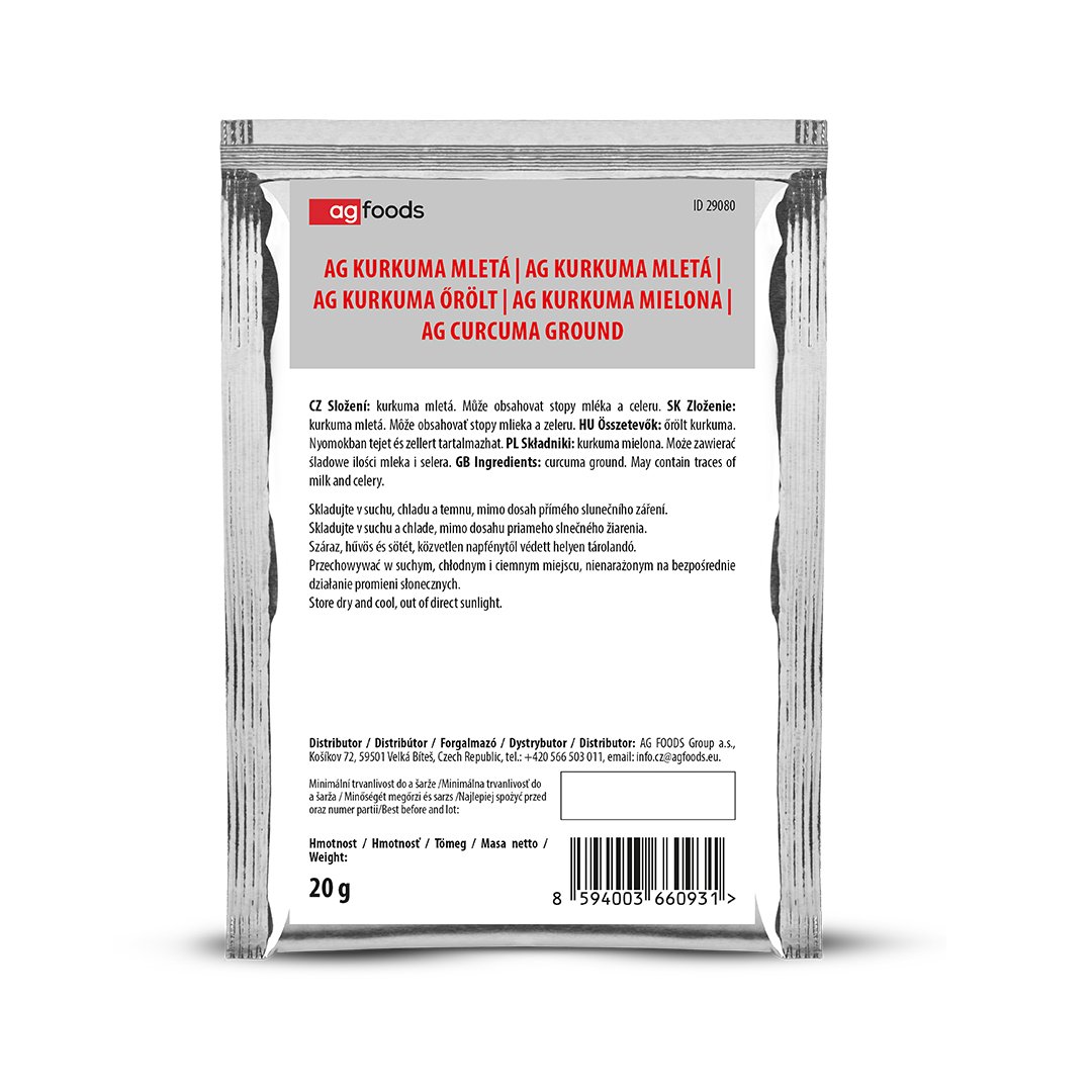 AG Kurkuma mletá 20 g je více než jen koření – je to základní ingredience pro kreativní a barevné vaření. S tímto malým balením získáte velkou příležitost objevovat nové chutě a tradice. Nechte se inspirovat a přineste si do kuchyně trochu slunce v praktické dóze.