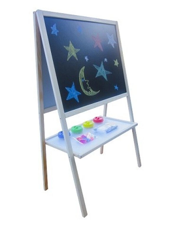 Oboustranná dětská magnetická tabule s odkládací poličkou, na praktickém stojanu, od firmy Aga4Kids.