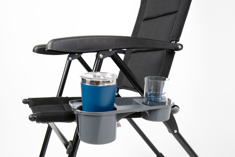 Díky promyšlenému designu úchytů lze stolek kdykoliv snadno sejmout a přemístit na jinou židli či uložit do přepravního obalu. Tento praktický doplněk tak rozšíří využitelnost vaší kempingové židle a poskytne vám pohodlný prostor pro odložení nápojů či drobností.