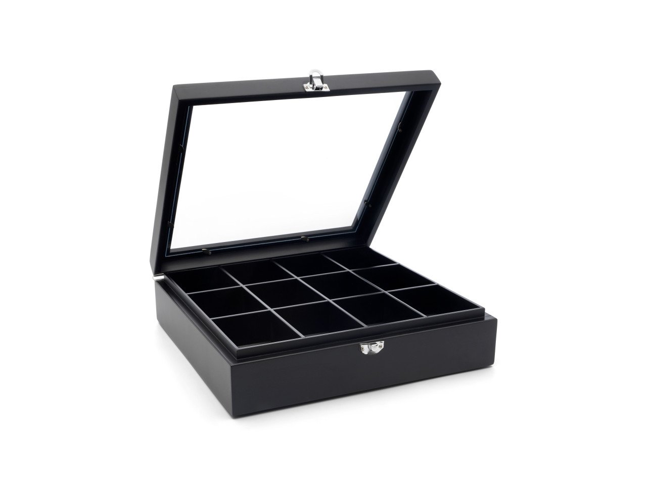 Bredemeijer Krabička na čaj Bamboo, 12 přehrádek s okénkem černá