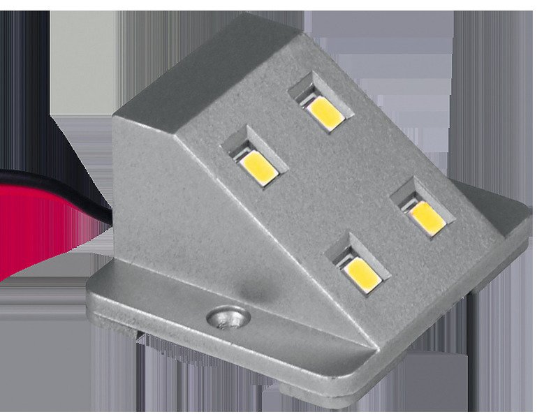 LED osvětlení skříně s magnetickým kontaktem. Zapne se při otevření dveří skříně. Hotový modul s protiplechem pro klapku nebo dveře. LED světlo 0,8 W. Energetická účinnost A . 6000K. Barva: stříbrná.