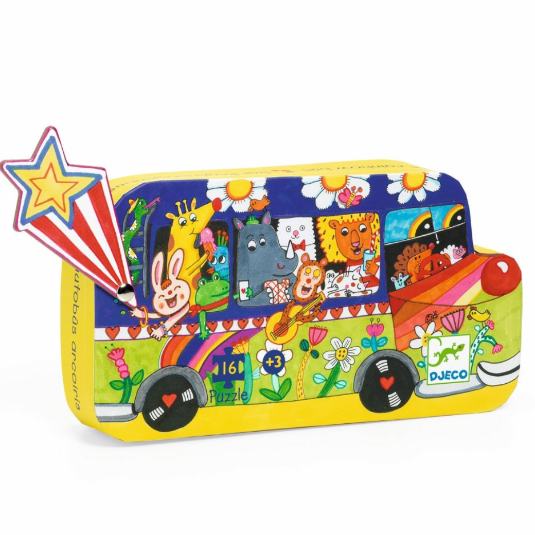 Objevte kouzelný svět plný hudby a fantazie s puzzle Duhový autobus od francouzské značky Djeco. Toto nebývale půvabné puzzle je navrženo tak, aby nadchlo nejmenší děti a poskytlo jim dokonalý zážitek z první skládanky. Kombinuje totiž vše, co malí objevitelé milují – zářivé barvy, roztomilá zvířátka a příběh, který ožívá s každým dílkem. Pevná krabička ve tvaru autobusu z něj dělá nejen praktické úložiště, ale i okouzlující doplněk, který ozdobí každý dětský koutek.