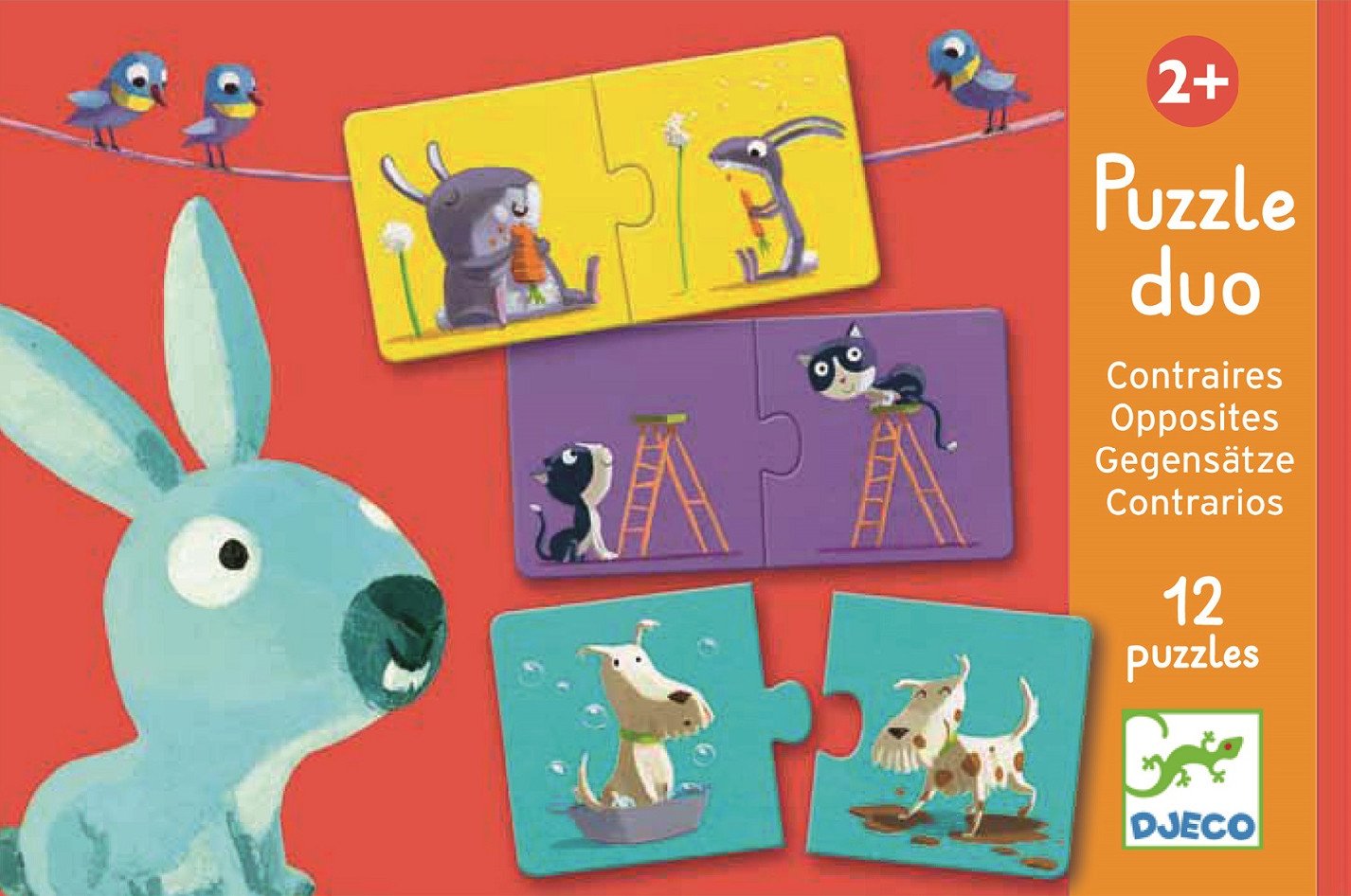 Objevte kouzlo učení hrou s DJECO Duo puzzle PROTIKLADY, které nabízí mnohem víc než jen skládání. Tyto originální puzzle z kvalitního tvrdého kartonu jsou speciálně navrženy pro nejmenší děti od 2 let a pomáhají jim přirozeně rozvíjet logické myšlení, jemnou motoriku a bohatou slovní zásobu. Každá dvojice obrázků vypráví příběh protikladů, který děti nadchne svými veselými barvami a roztomilými zvířátky.