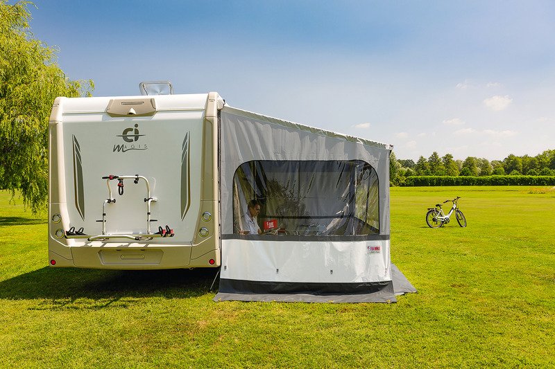 Boční stěny stanu Thule RESIDENCE G3 Typ markýzy Thule: Omnistor 5200, Délka výsuvu markýzy: 2,50 m, Montážní výška markýzy: 2,15 – 2,29 m – S