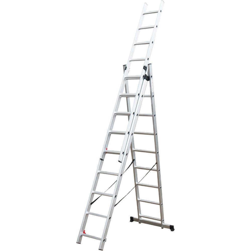 - Víceúčelová konfigurace: Žebřík můžete použít jako samostatný jednodílný, spojit dva díly do klasického dvoudílného žebříku nebo rozložit všechny tři části do impozantní délky přes 5,9 metru. Složený zabere pouhých 2,54 metru.