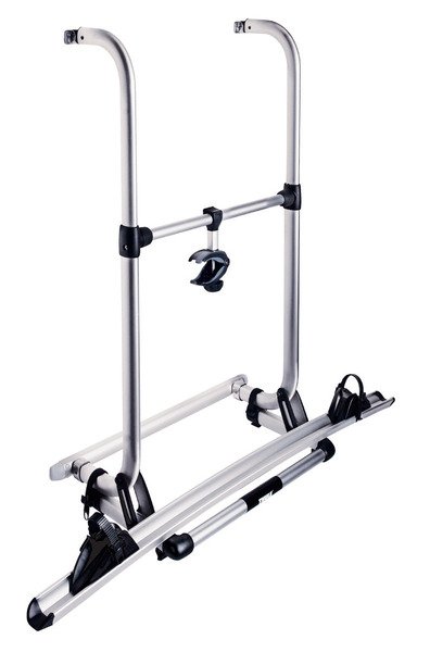 Kompaktní nosič jízdních kol, vhodný pro dodávky s dělenými zadními dveřmi. Montáž pomocí šroubů a montážních desek. Montážní výška 80 až 150 cm. Šířka rámu: 55 cm. Délka kolejnice: 126 cm. Nosnost 30 kg