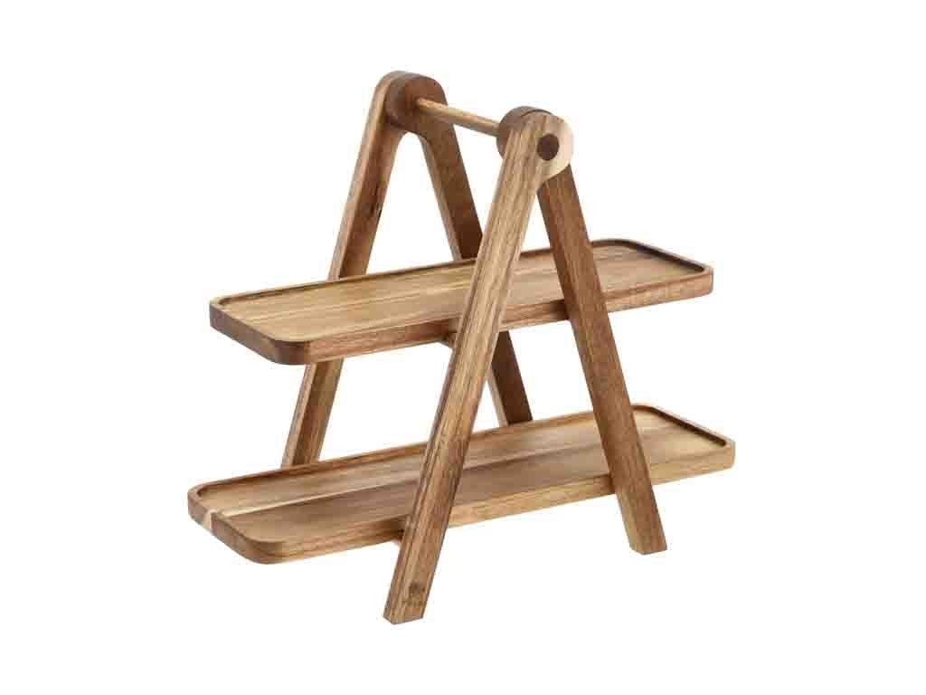 Objevte kus přírody ve vaší kuchyni s akáciovým servírovacím etažérem Holm. Tento elegantní a nesmírně praktický pomocník promění každé stolování, snídani i večeři v dokonalý gastronomický zážitek. Díky svému přírodnímu vzhledu a dvěma prostorným patrům nabízí nejen úložný komfort, ale také styl, který oživí interiér vaší jídelny. Jeho robustní konstrukce z kvalitního akáciového dřeva zaručuje, že se jedná o kus, který vám bude dělat radost po dlouhá léta.