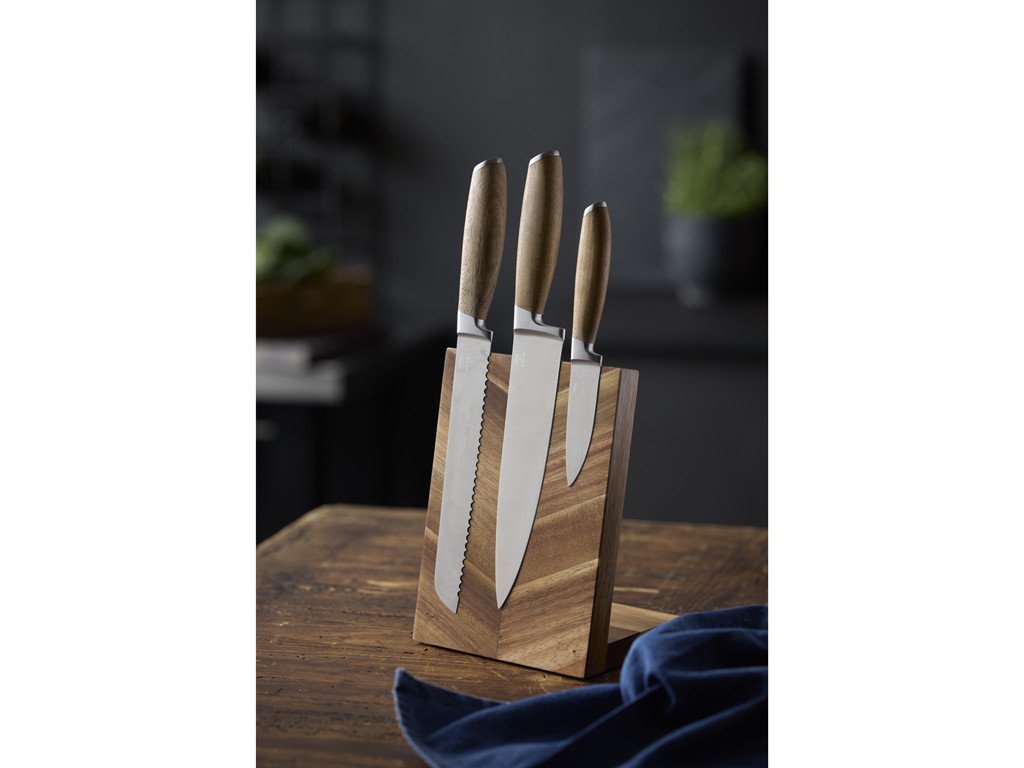 Nůž na chleba Holm 33 cm představuje harmonii mezi funkčností, trvanlivostí a estetikou. Je to investice do každodenního požitku z kuchyňské práce, která ocení jak nároční kuchaři, tak všichni, kteří si chtějí vychutnat dokonalý řez. Akáciové dřevo s přirozenou variabilitou kresby dodává každému kusu originální charakter, díky čemuž získáte nejen praktický nástroj, ale i kousek s duší.