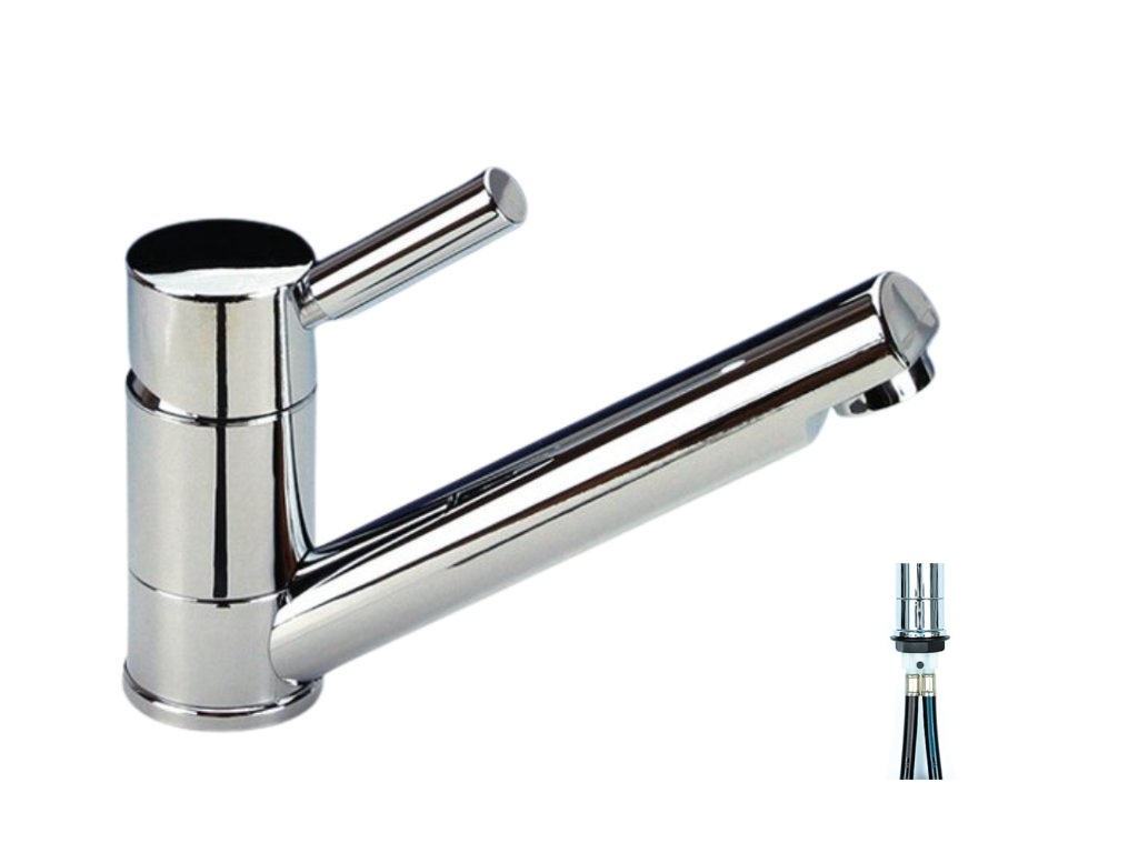 - Výška baterie 134 mm a dosah výtoku 150 mm optimalizovaný pro standardní dřezy v karavanech