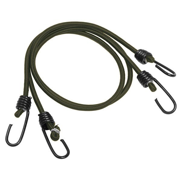 Elastický popruh s háky (gumicuk, pavouk) k zachycení věcí k batohu, lodi, motocyklu apod. Barva je olivově zelená. Průměr 6 mm. Délka 75 cm. Balení obsahuje celkem 2 ks.