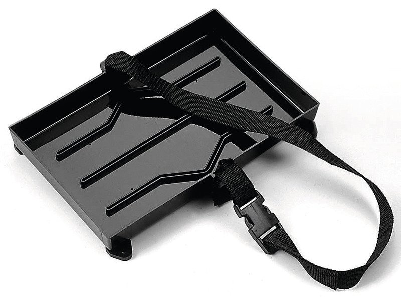 Plastový držák baterie s rychloupínacím popruhem.