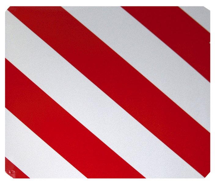 - Návrh a symbolika: Cedule obsahuje tři výrazné červené reflexní pruhy na žlutém reflexním podkladě. Tato kombinace je mezinárodně uznávaným symbolem pro upozornění na dlouhý nebo přesahující náklad a je srozumitelná řidičům bez ohledu na jazyk.