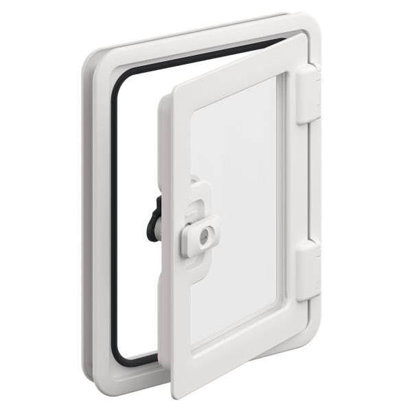 Servisní dveře Seitz SK 4, vyrobené vstřikováním z povětrnostně odolného ASA (akrylonitrilstyren-akrylátu), nabízejí optimální ochranu za všech povětrnostních podmínek.