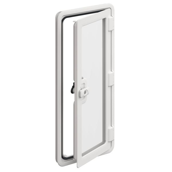 Servisní dveře Seitz SK 4, vyrobené vstřikováním z povětrnostně odolného ASA (akrylonitrilstyren-akrylátu), nabízejí optimální ochranu za všech povětrnostních podmínek.