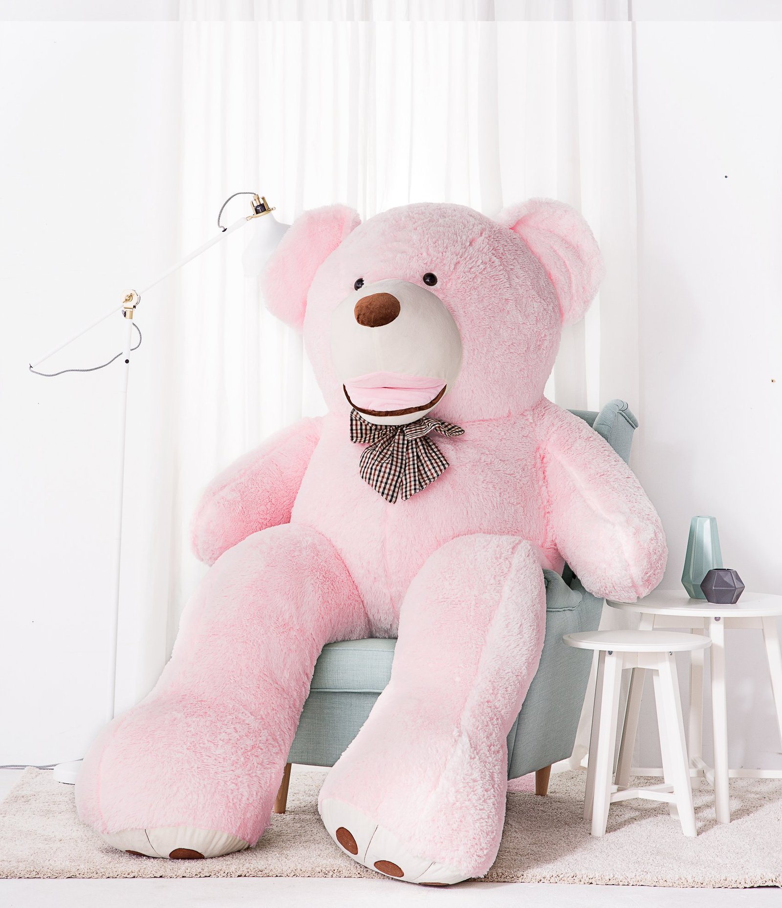 Tento velký medvídek je ideální pro každého, kdo touží po něžném příteli. Skvěle se hodí jako originální dárek k narozeninám, Valentýnu, Vánocům nebo jen tak pro radost. Představte si ho v dětském pokoji jako strážce snů, v obývacím pokoji jako stylový doplněk, nebo v ložnici jako věrného společníka. Jeho jemná růžová barva dodá každému interiéru nádech tepla a hravosti, zatímco jeho majestátní velikost z něj činí nepřehlédnutelný dekorační prvek.