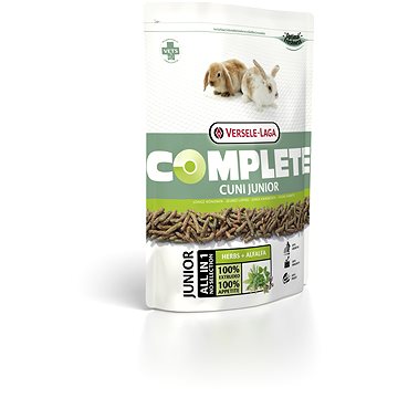 Krmivo pro králíky Versele Laga Complete Cuni Junior pro mladé zakrslé a doma chované králíky 500 g: Versele-Laga Complete Cuni Junior poskytuje výživu bez zbytečných starostí. Výjimečná chutnost pelet vše v jednom předchází vybíravosti. Tak váš králík dostane všechny nezbytné prvky výživy a zůstane zcela zdravý. Krmivo bez obilovin s dlouhou vlákninou a zvýšeným obsahem vápníku, bílkovin a vitamínů obsahuje všechny stavební prvky pro správný růst. Versele-Laga Complete Cuni Junior je vyvinuto veterináři na základě moderních vědeckých poznatků. SloženíVedlejší produkty rostlinného původu (vojtěška 35 %), rostlinné bílkovinné extrakty, semena (lněné semeno 2 %), minerální látky, fruktooligosacharidy (0,3 %), měsíček, juka. Analytické složkyHrubé bílkoviny 17 %, obsah tuku 3 %, hrubá vláknina 20 %, hrubý popel 9,5 %, vápník 1 %, fosfor 0,8 %. Dávkování krmivaV určité růstové periodě lze podávat v neomezeném množství. V závislosti na velikosti a plemeni králíka se pohybuje doporučená denní dávka mezi 30 a 50 g.