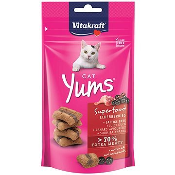Hledáte pro svou kočku dokonalý pamlsek, který potěší její chuťové buňky a zároveň podpoří její zdraví? Vitakraft Cat Yums Superfood s kachnou a bezinkami je lahodná a výživná odměna, která spojuje to nejlepší z přírody. Tyto měkké pamlsky bez obilovin jsou obohacené o superpotraviny, jako je černý bez, a nabízejí jedinečnou kombinaci skvělé chuti a přirozené péče o vašeho mazlíčka.