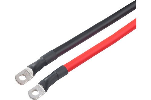 Sada kabelů 12V se 2 kabely (červený/černý) s oky M8 na jedné straně pro připojení ke svorkám pólů. Délku lze zkrátit.