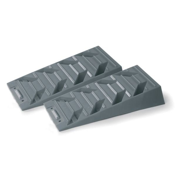 Plastové klíny pro vyrovnání karavanu a obytného vozu na nerovném terénu. Důležitý doplněk pro komfortní spaní, vaření a sprchování.