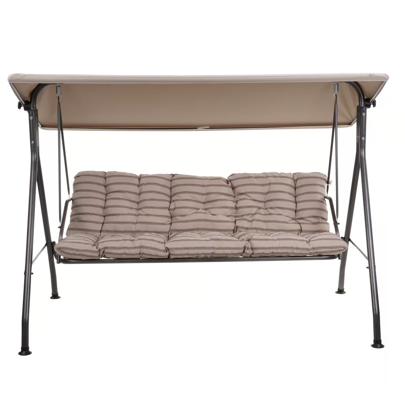 Houpačka Sevilla pro 3-4 osoby, se sedačkou upevněnou na pružinách. Solidní, pevná konstrukce. Rám malovaný práškovou polyestrovo – epoxidovou barvou. Sedadlo NELZE sklopit do ležící polohy. Barva rámu: antracit. V sadě také 2 sedáky (jeden na sedadlo a jeden na opěradlo). Sedáky jsou prošívané. Vrch i spodek sedáku je z bavlněno – polyesterové tkaniny. V opěrné části šňůrky pro připevnění k rámu. Výplň: řezaná houbička flocke. Stříška je vyrobena z tkaniny WATER REPELLENT, materiál je impregnován ve směru voděodolnosti, kapalina kondenzuje na povrchu díky speciálnímu hydrofobnímu povlaku. Tkanina je také odolná vůči skvrnám – nečistoty lze snadno odstranit otřením (bez vtírání) vlhkým hadříkem z mikrovlákna ,s použitím malého množství tekutiny. Pozor: neznamená to 100 procentní odolnost vůči silnému dešti !!