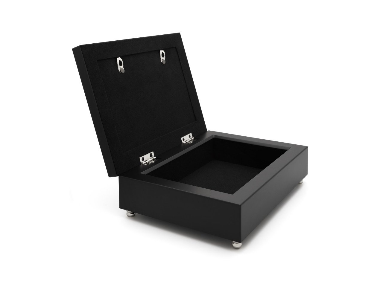 - Prémiový vzhled a osobní gravírování: Hluboká černá barva dodává krabičce univerzální a nadčasový vzhled, který se hodí k jakémukoli interiéru. Kovový štítek na víku je připraven přijmout vyryté jméno, datum, nebo krátkou citaci, čímž se z běžného předmětu stává neopakovatelný a osobní artefakt.