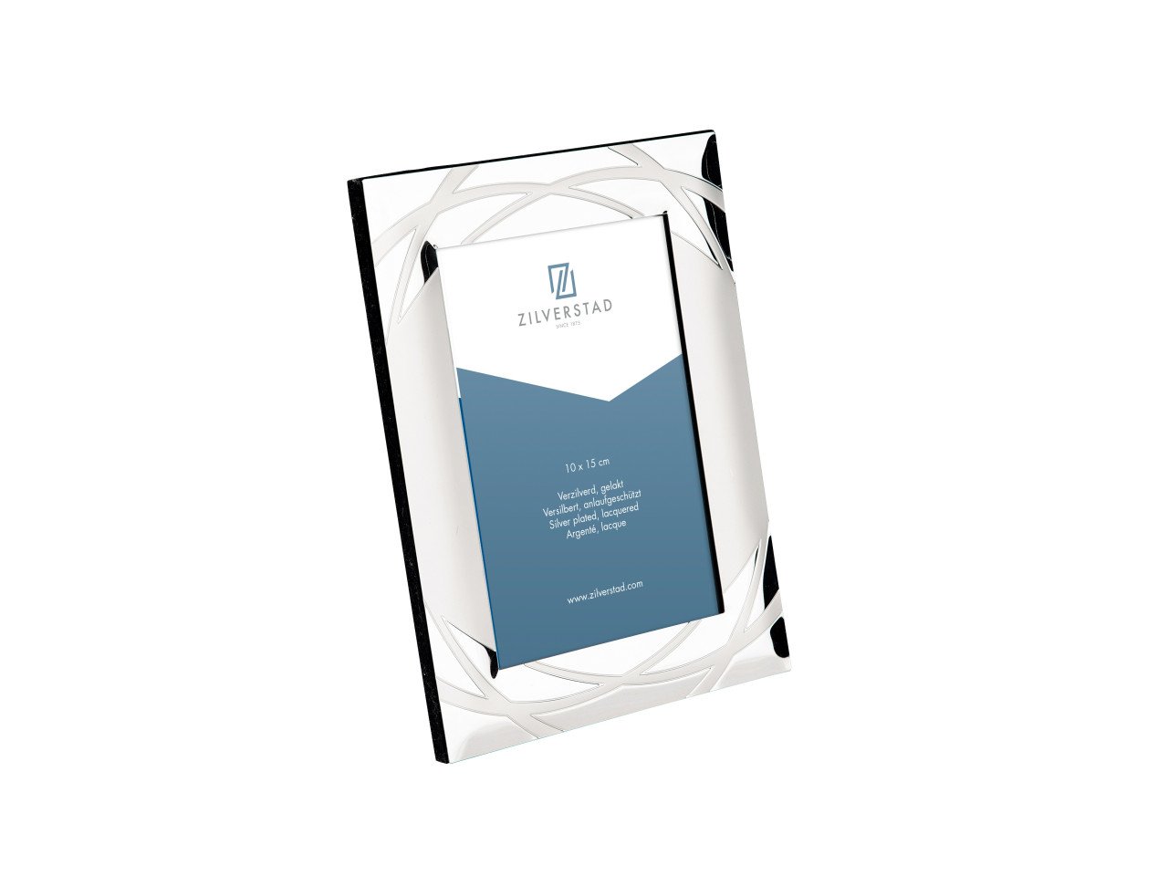 - Postříbřený a lakovaný povrch: Zářivý stříbrný vzhled je chráněn vrstvou kvalitního laku, který zamezuje oxidaci a tmavnutí materiálu. Rámeček tak zůstává stále jako nový.