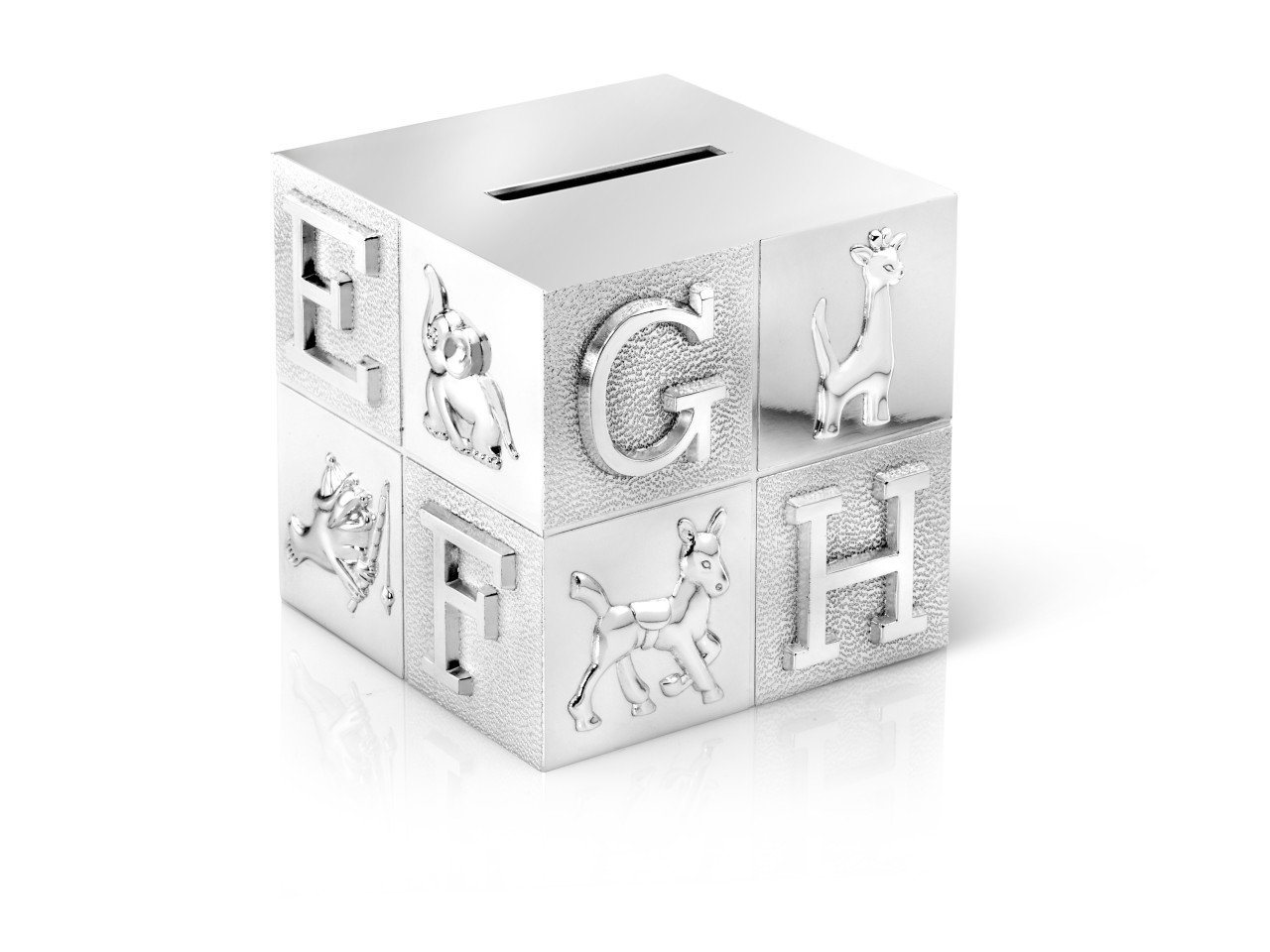 - Nadčasová elegance: Povrch je postříbřený a chráněný kvalitním lakem. Oproti běžným kovovým kasičkám tak nevyžaduje žádné leštění a dlouhodobě si zachovává svůj lesk a krásu i při častém používání malými ručkami.