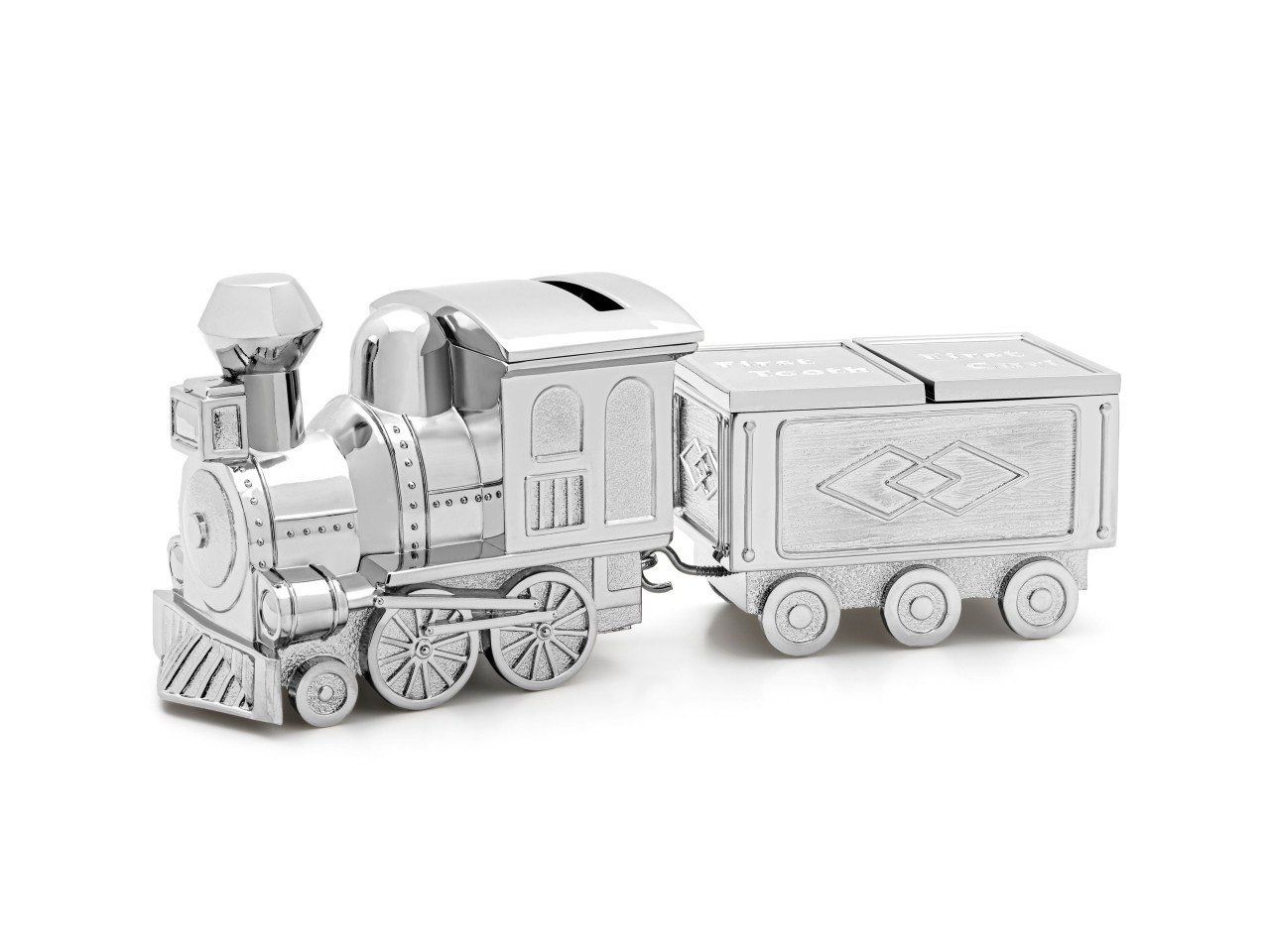 Lokomotiva se svým věrným vagonkem je navržena s láskou k detailu. Hlavní lokomotiva slouží jako bezpečná pokladnička, kam děti mohou vhazovat mince a učit se tak zábavnou formou spořit. Vagon za lokomotivou pak plní roli klenotníka pro ty nejcennější dětské relikvie – první mléčné zoubky nebo stříbrné lokýnky z prvního stříhání. Každá část tak má své jasné a důležité poslání.