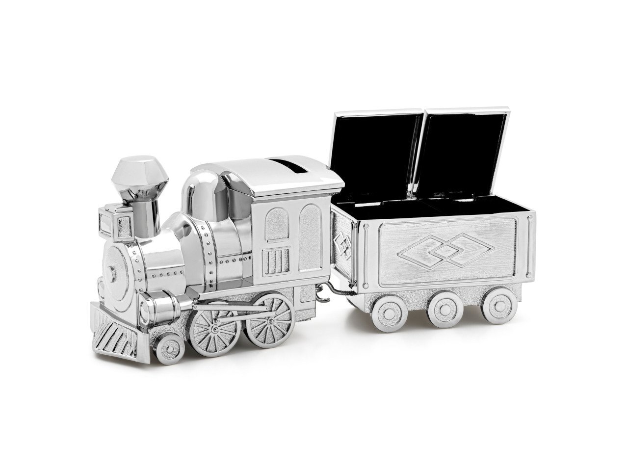Zilverstad lokomotiva je propracovaná do posledního detailu. Hlavní část, samotná lokomotiva, slouží jako klasická pokladnička s otvorem pro vhazování mincí. Připojený vagónek pak plní tu nejdůležitější roli – je to bezpečná schránka pro první dětské zoubky, které vypadnou, nebo pro stříbrný pramínek vlasů z prvního střihu. Celý set působí jako kompaktní souprava připravená vyrazit na cestu, přičemž každý kus lze prakticky používat i samostatně.
