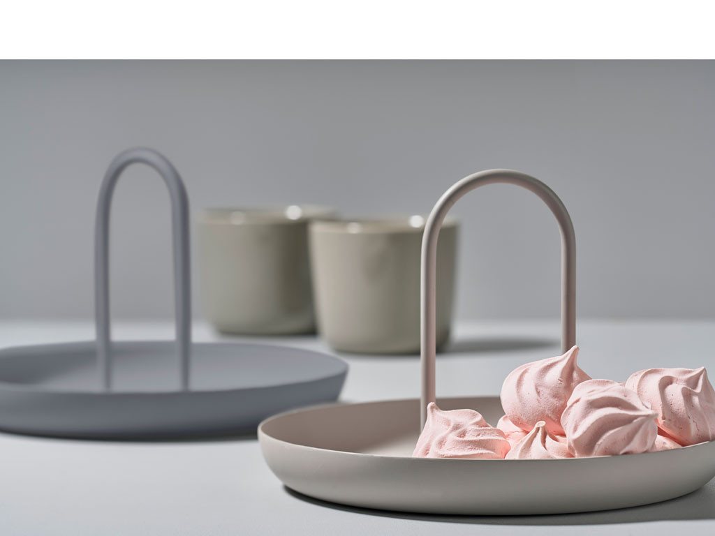 Tác Singles Warm Grey od Zone Denmark je vyroben z vysoce kvalitního kovu s matným povrchem v módním teplém šedém odstínu. Tato povrchová úprava není jen o vzhledu – zajišťuje příjemný a bezpečný úchop a je odolná proti otiskům prstů. Dominantním prvkem je svislá rukojeť vysoká 13 cm, která nabízí přirozené a pohodlné držení. S tímto tácem tak snadno a bezpečně přenesete i vyšší nápoje nebo talířky.